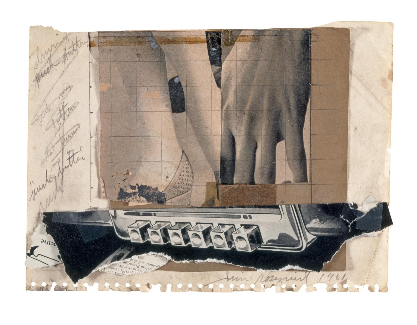 Source for Pushbutton, 1961. Collage and mixed media on paper, with adventitious marks. 8 1/4" x 11 3/16" (21.0 x 28.4 cm). Collection of the Estate of James Rosenquist.