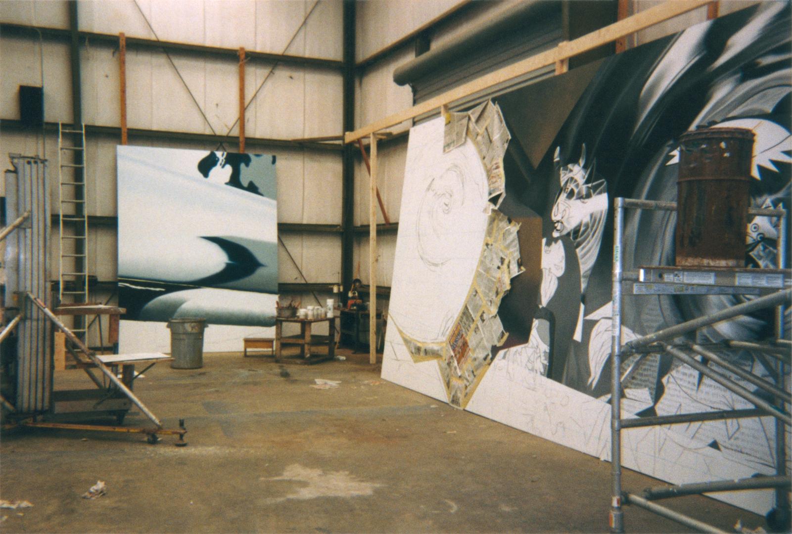 View of The Swimmer in the Econo-mist #1, in progress, in Rosenquist's Aripeka, Florida studio, circa 1997